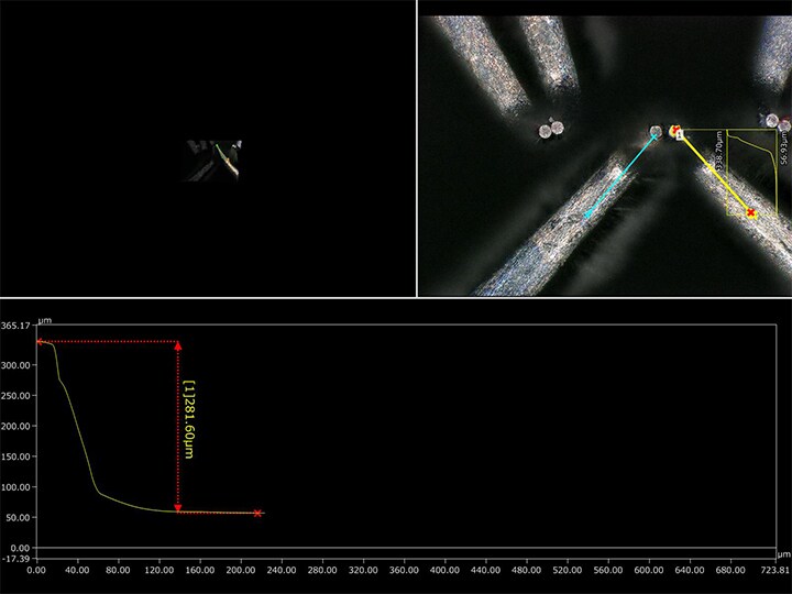 De 4K digitale microscoop uit de VHX-reeks kan met behulp van heldere waarnemingsbeelden en zonder het doel aan te raken zeer nauwkeurige 2D- en 3D-metingen uitvoeren.