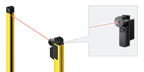 Laserowe narzędzie do osiowania można zamocować w dowolnym miejscu z przodu kurtyny świetlnej, co pozwala szybko zapewnić prawidłowe ustawienie. Nie potrzeba do tego żadnych kabli.