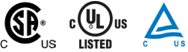 Produkty muszą być zgodne z normami UL dla USA oraz CSA dla Kanady; certyfikowane produkty kwalifikują się do oznaczenia znakiem jednoski certyfikującej. Produkty zgodne zarówno z normami UL jak i CSA są oznaczone sąsiadującymi wskaźnikami „C” i „US” po obu stronach. UL oraz CSA są podawane jako reprezentatywne jednostki certyfikujące, ale niezależnie od tego, która organizacja certyfikująca je przyzna, certyfikaty te są uznawane za równoważne.