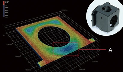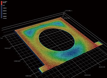 Seria VR może również mierzyć szeroki obszar o wymiarach do 300 mm × 150 mm, rejestrując jednocześnie do 800 000 punktów danych na skan. Ponieważ można zidentyfikować cały kształt oraz zmierzyć wysokie i niskie części, nawet niewielkie zapadnięcia można identyfikować równie łatwo jak duże. Wszystkie dane pomiarowe są zapisywane i mogą być porównywane z innymi danymi lub trójwymiarowymi danymi projektowymi.