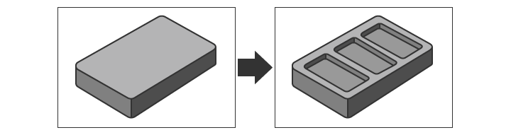 Jak wspomniano wcześniej, zapadnięciom można zapobiec przez zmniejszenie grubości. Jednak w niektórych przypadkach nie można zmienić grubości. Na przykład czasami nie można zmienić grubości, aby zachować wytrzymałość. W takich przypadkach warto zmienić kształt tak, aby grubość ścianki zmieniała się stopniowo. Na poniższym przykładzie można zobaczyć, w jaki sposób dodanie zaokrąglonych naroży skutkuje niewielkim zmniejszeniem grubości ścianki.