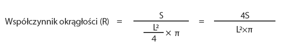 Połączenie wyników tych wzorów w następującym wzorze pozwala uzyskać współczynnik okrągłości.