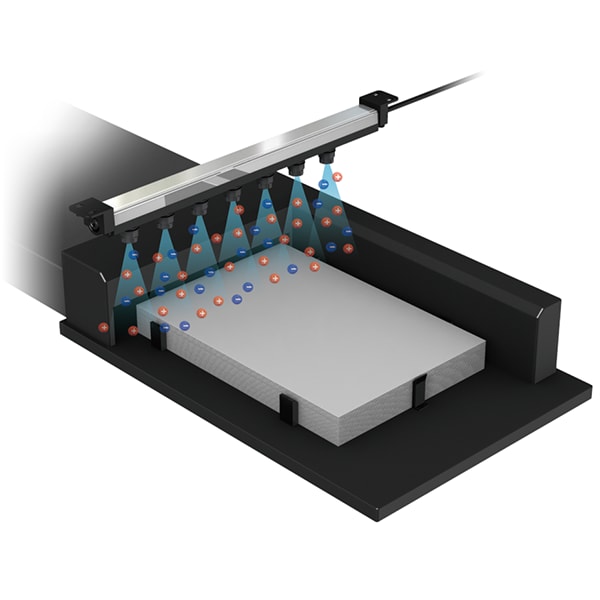 Ładunki elektrostatyczne mogą powodować problemy, takie jak podawanie podwójnych arkuszy, zacięcia papieru i nieprawidłowe wyrównanie arkuszy. W przypadku wystąpienia tych problemów nie można odbierać arkuszy, więc konieczne są środki zaradcze. Dejonizator umożliwia precyzyjne przeciwdziałanie i zmniejsza koszty operacyjne.