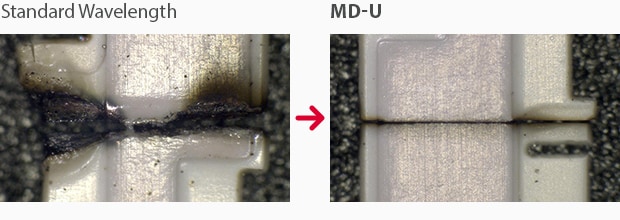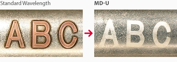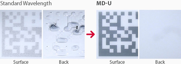 The MD-U Series’ UV wavelength is 1/3 the length of a standard laser, which leads to a smaller beam diameter. Because of this, the UV laser only marks precisely on the spot it needs to. Therefore, there is no swelling across the material that could cause deformation.