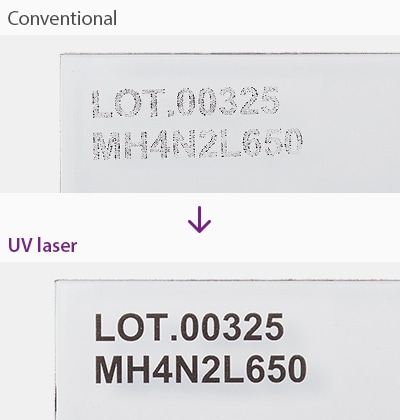 UV lasers minimise thermal load and provide high-contrast marks with low surface impact and micron level depth.
