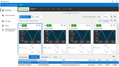 Simply connect the SK Series to also monitor the amount of electrostatic charge on the target surface and the ion balance of the ionizer.