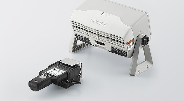 Install the SK-050 sensor in front of and behind the ionizer to save the effects of static elimination—which can vary depending on target and environment—in chronological order to a PC. This is useful for verification during installation, changeover, and periodic inspections.