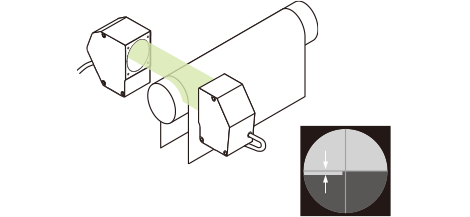 Sensor heads are installed so that the top surfaces of the roller and target are projected as a single plane on the captured image. Thickness is found by measuring step from the roller to the top of the target.