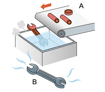 In addition to the phase transformation described in the previous section, other reasons for deformation problems caused by heat treatment include incorrect or uneven surface shape or heating/cooling. This section explains these deformation problems, their causes, and measures to prevent them.