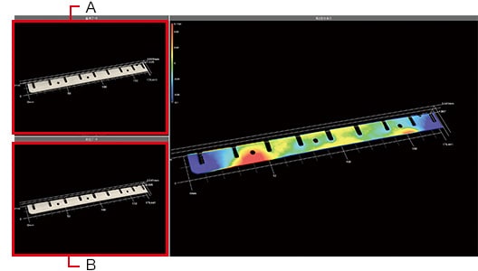It is possible to quickly check the differences in data obtained by measuring multiple target shapes before and after heat treatment, and the amount of difference in bad products when compared to the reference product. This enables easy quantitative analysis and evaluation of deformation caused by heat treatment.
