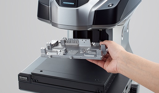 Measurement can be performed simply by placing the target on the stage and pressing a button. Strict positioning or other preparation is not necessary. The VR Series is able to extract features from the object and automatically adjust the alignment of the part. This makes it possible to perform highly accurate measurement by operators who do not have knowledge or experience related to measuring instruments.