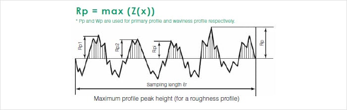| Maximum profile peak height (Rp, Pp, Wp) |
