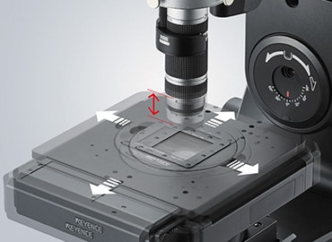 The microscope saves and reproduces past image capture conditions. By simply selecting an image from an album of captured images, its image capture settings (such as lens magnification, shutter speed, gain, light shift, edge enhancement, white balance, and light adjustment conditions) are loaded and reproduced automatically. This automatic reproduction of settings not only significantly reduces work hours but also enables different users to observe targets under the exact same conditions, thereby providing stable analysis results.