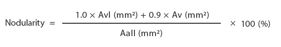 The formula to use in determining the nodularity and the values to substitute are explained below. -
