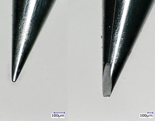 Tools are made of polished metals and the surfaces of their cutting tips are even glossier. Such surfaces cause strong reflected light, which generates glare that hinders observation and measurement.