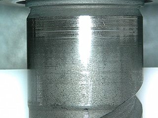 Indentations occur when some sort of impact is applied to the bearing. When the observation surface on the bearing is not flat, time-consuming focus adjustments must be performed during high-magnification observation with a microscope.