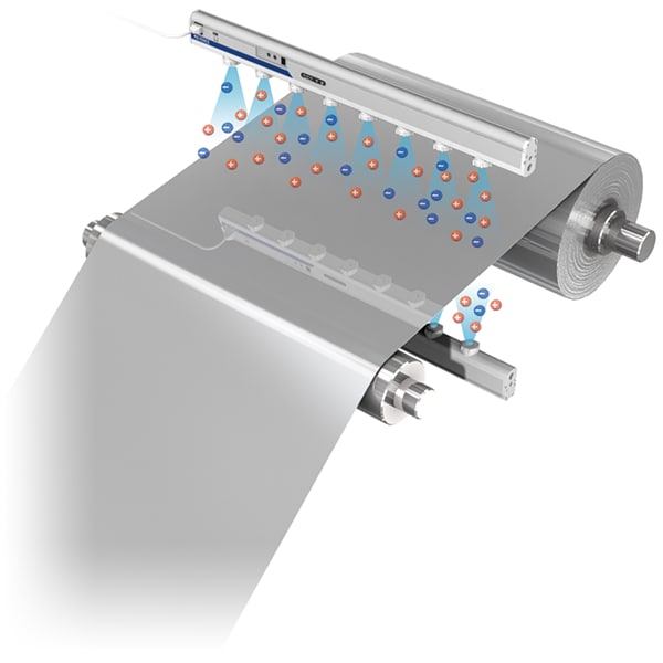 In order to coat the paper with a silicone layer, a very strong electrostatic charge (50 to 100 kV) is generated in the sticker release paper, which can lead to problems such as adhesion of foreign particles, sparking and staff discomfort. An ionizer can eliminate these problems.