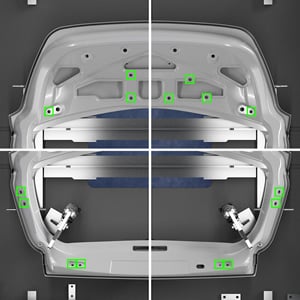 With the IV2 Series, simultaneous detections can be performed in 16 locations within the field of view, which enables presence detections of welded nuts in multiple locations.